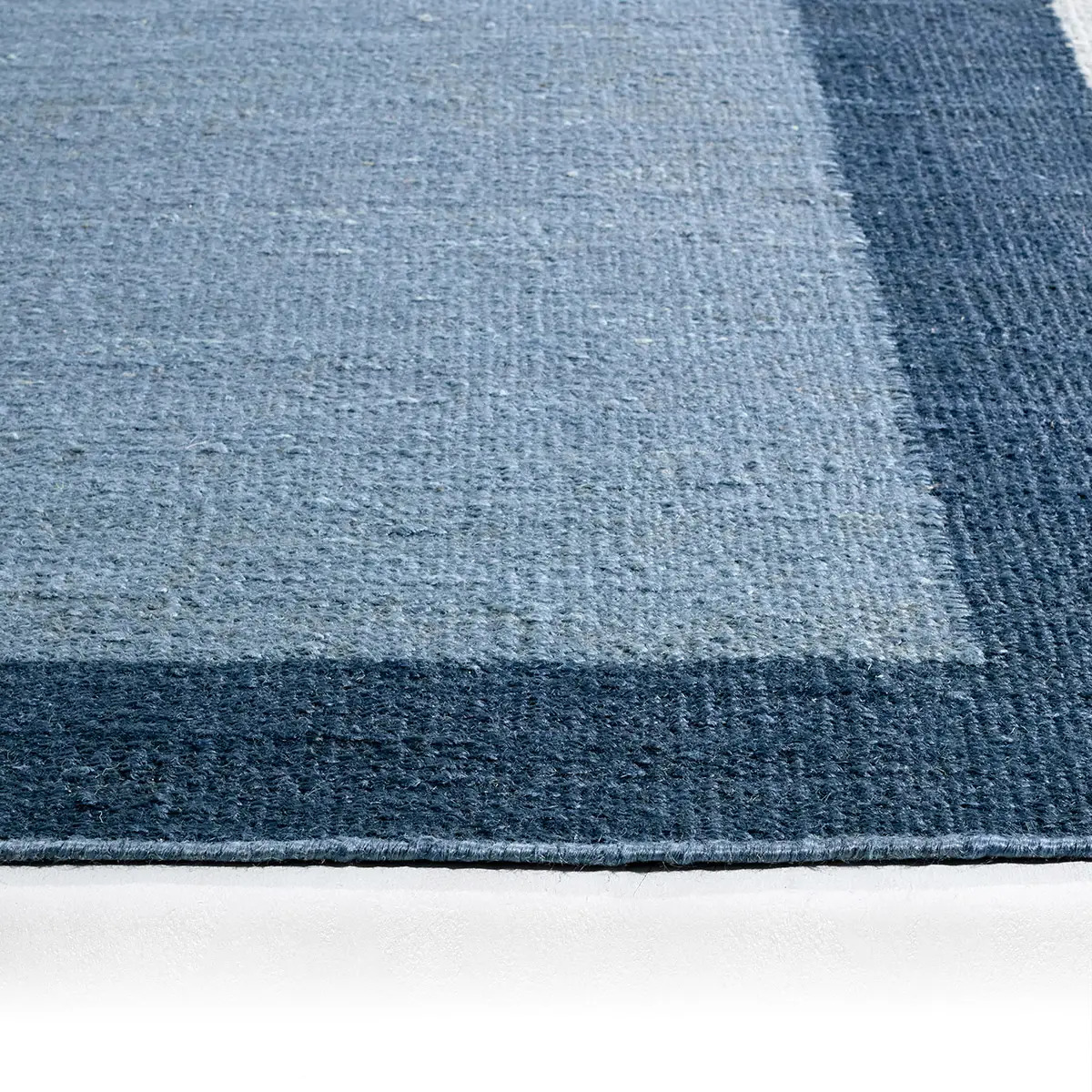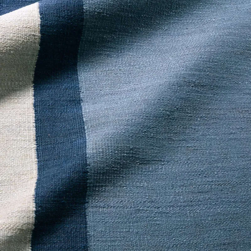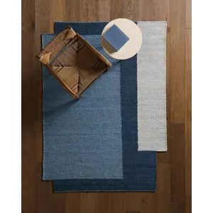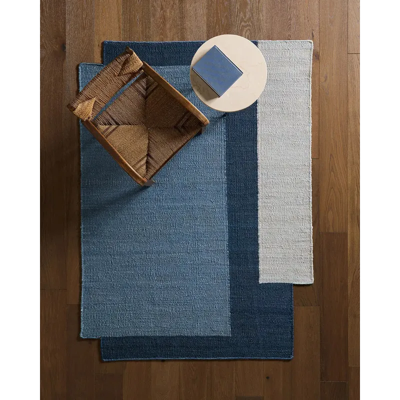The Badal design from the Refined Layers collection presents a modern architectural statement through its compelling color block palette. Handcrafted from natural jute, its beautifully textured dhurrie pile showcases layered geometric forms in a sophisticated Blue pallete.