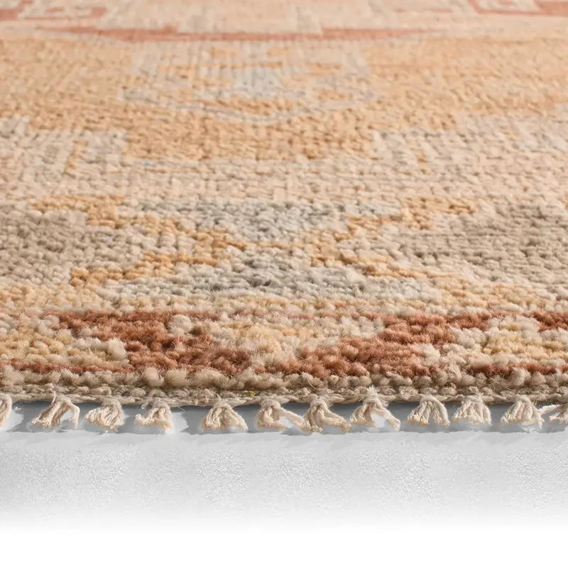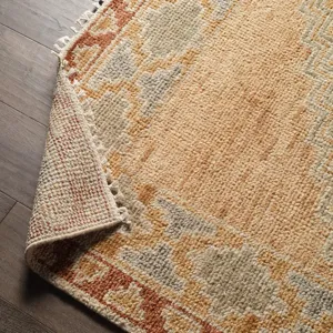 The Sevak collection skillfully emulates vintage designs with a simplified and tonal twist of modernity mixed into the motifs. These Kars-inspired patterns have the uncanny ability to ground a space with inviting and comfortable appeal while lending the perfect interest to a room. The Vashti design showcases an open, center medallion with a border and fringe to match. The orange, blue, green, beige, and brown colorway establishes the global, vintage style. Naturally stain-resistant, the 100% wool pile is soft underfoot and easy to clean while maintaining effortless sophistication. Obtaining Nest Seal and RugMark certifications, this global area rug brings ethical, handmade luxury to the home.
