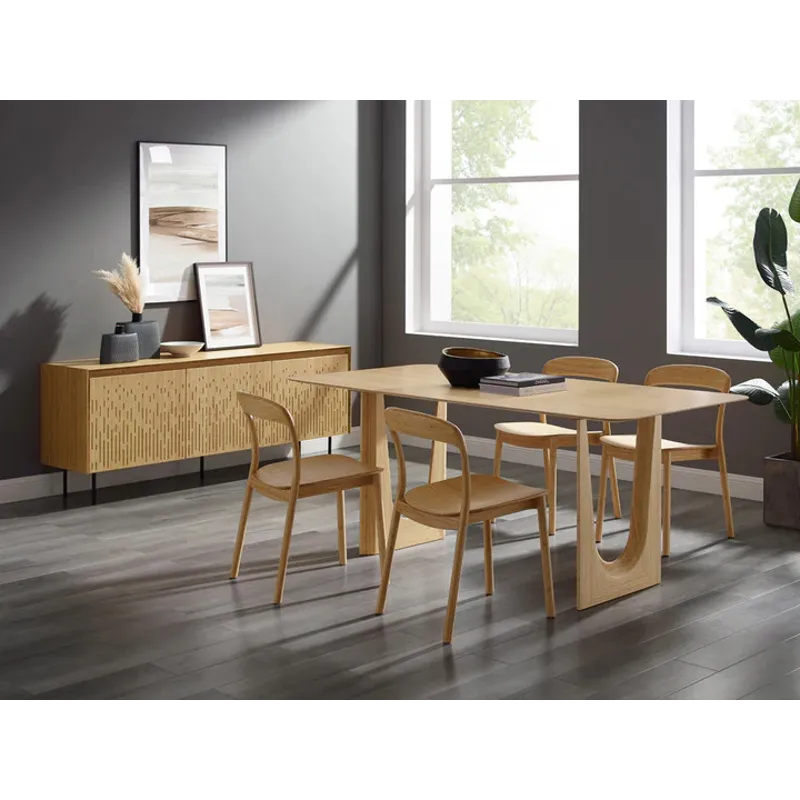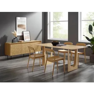 Sculptural, sophisticated, and sustainably crafted — Effortlessly modern, and beautifully sustainable, the Hanna dining table is a modern design statement, beautifully built in 100% solid bamboo. Its bold reverse knife edge tabletop floats above a dramatic, architecturally inspired base, creating an elegant silhouette that draws the eye from every angle. Finished in nature-inspired Wheat, Hanna’s clean lines and soft curves add refined style to any contemporary home. Comfortably seating six, it’s the perfect gathering place for everyday dining, meaningful celebrations, or creative collaboration.