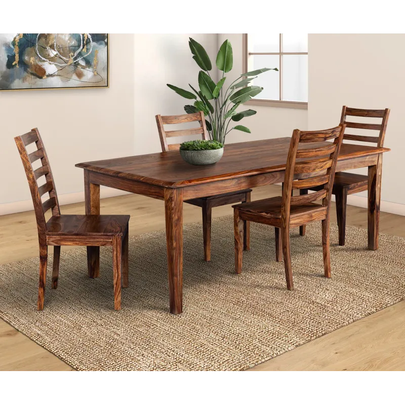 Made from solid honey colored sheesham wood, the Sonora Dining Table features hours of handcraftsmanship. With beautiful beveling around the table top and elegant tapered legs, it showcases the natural markings and rich color variation of natural sheesham wood. A heritage piece built for many years of dining enjoyment.