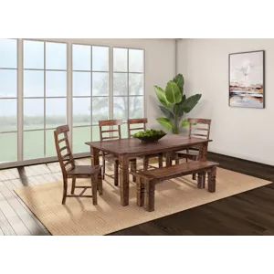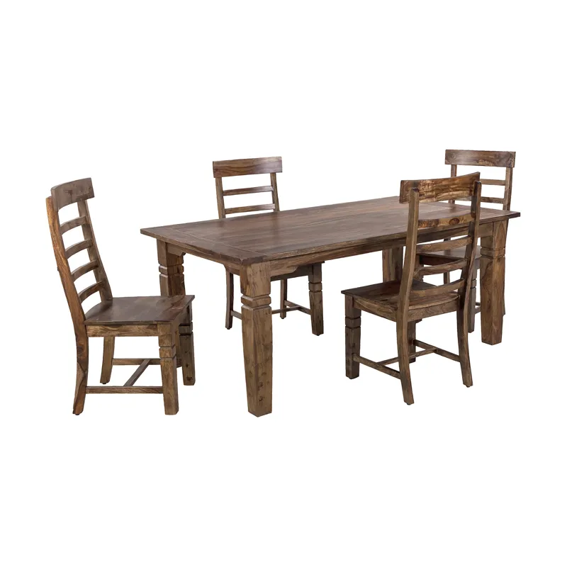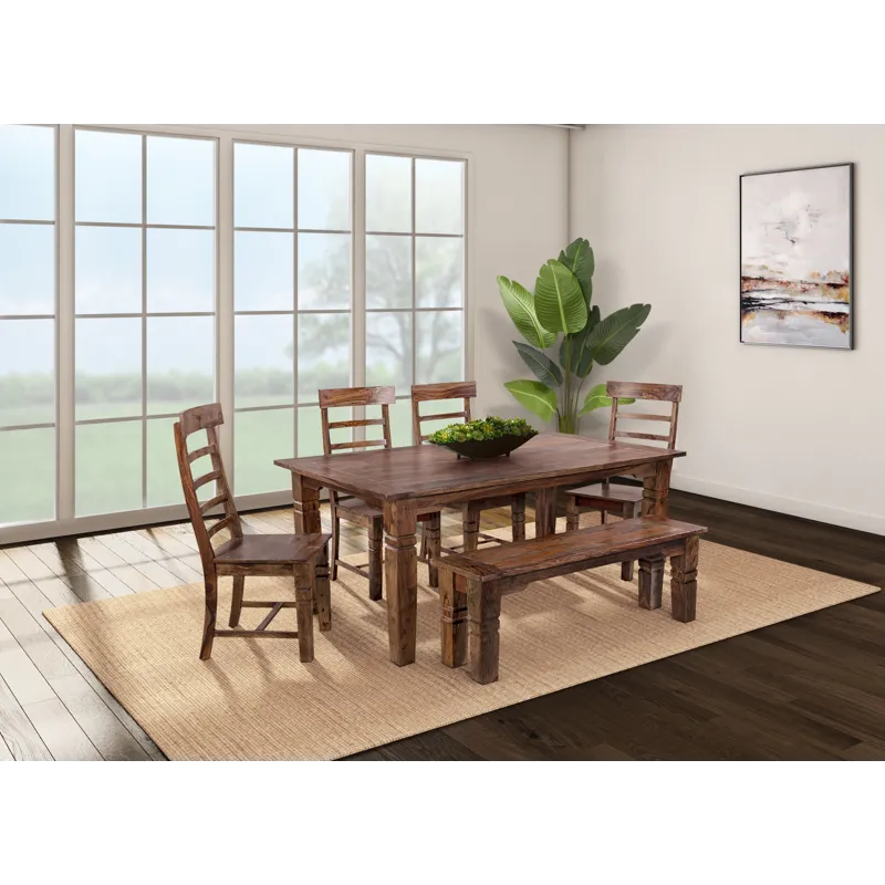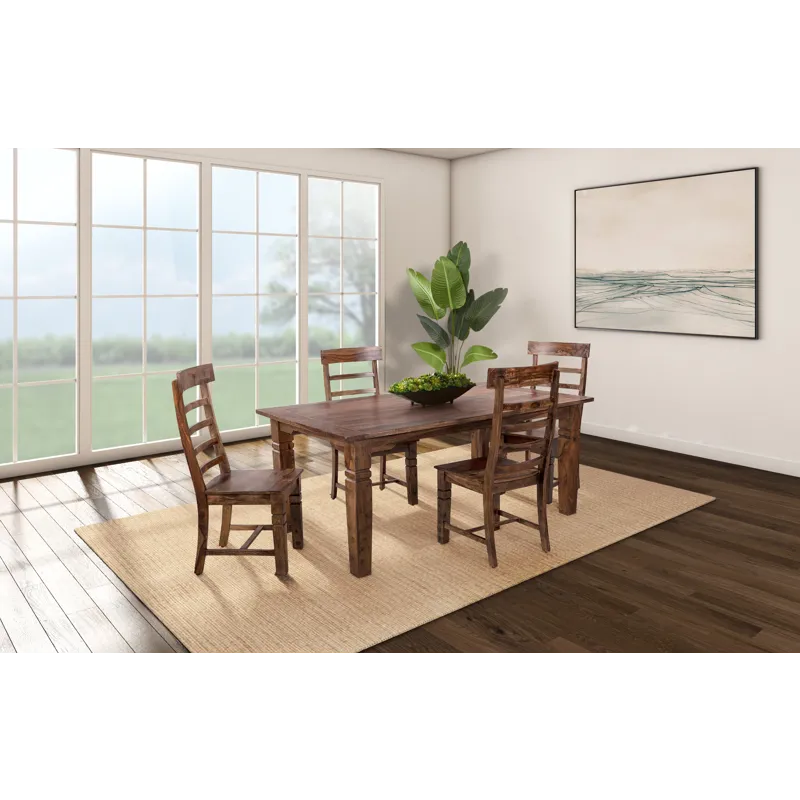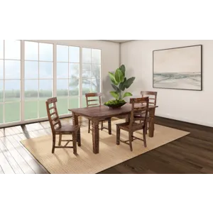 The Tahoe Dining Table and Chairs are individually handcrafted and carefully hand joined with unique graining and color on each piece. Slat-back chairs and carved detailing create a timeless design with added character.