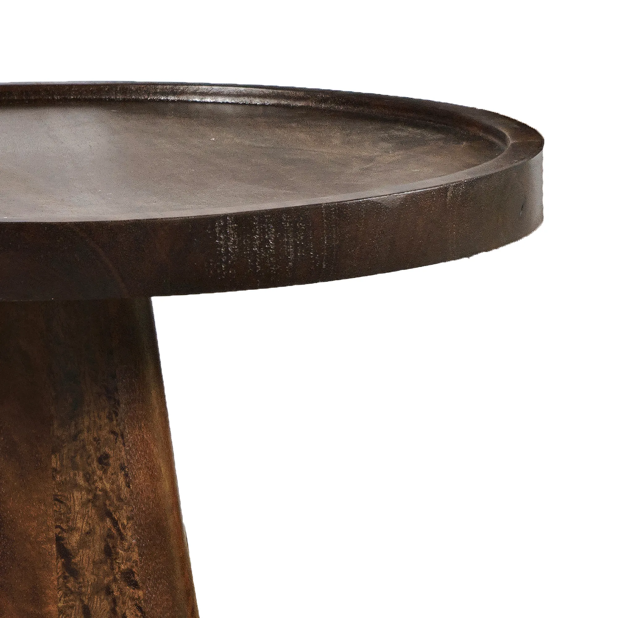 • -Set of Three Accent End Tables -Solid Mango Wood -Easy No-Tool Assembly -Tapered Mid-Century Modern Style -Large Table: 18" Diameter -Medium Table: 16" Diameter -Small Table: 14" Diameter