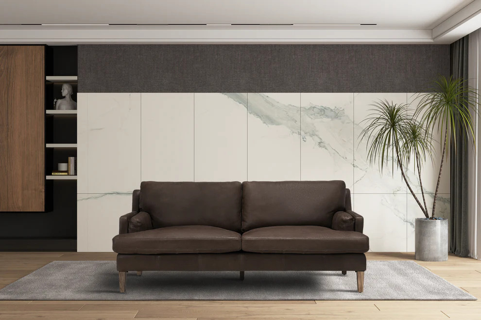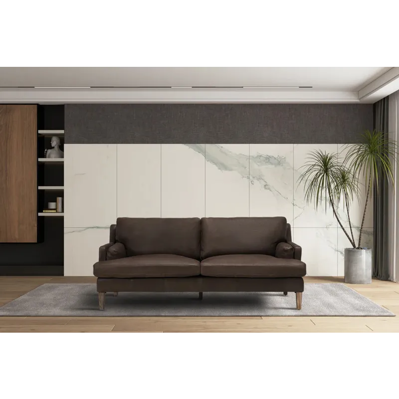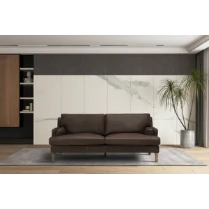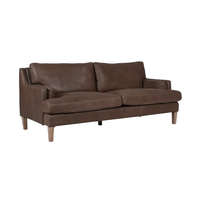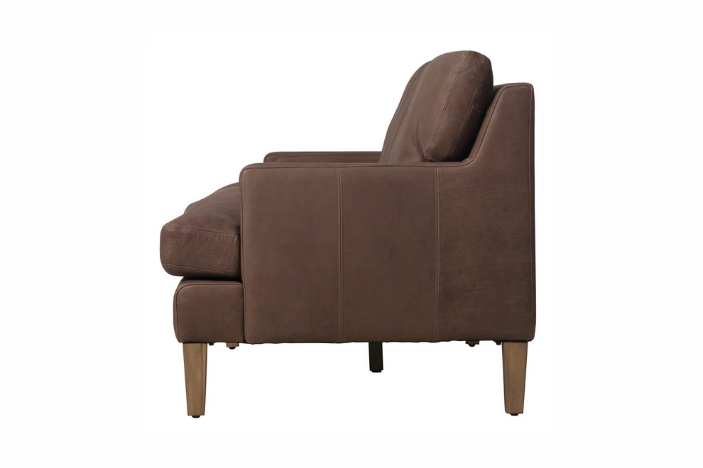 The Stewart Collection is part of The Luxe Leather Program covered all over in a thick, hand-tipped luxurious aniline-dyed chocolate leather which features a rich, matte hand with a super soft feel. With recessed padded arm rests and clean lines, the Stewart has a comfortable transitional look which blends well with many styles.