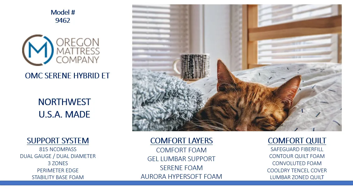 The Quilted Serene Hybrid Euro Top Mattress by Oregon Mattress Company may be available at Garrison's Home in the Central Point, Medford, Phoenix, Phoenix and Medford areas. Please contact us to check availability.
