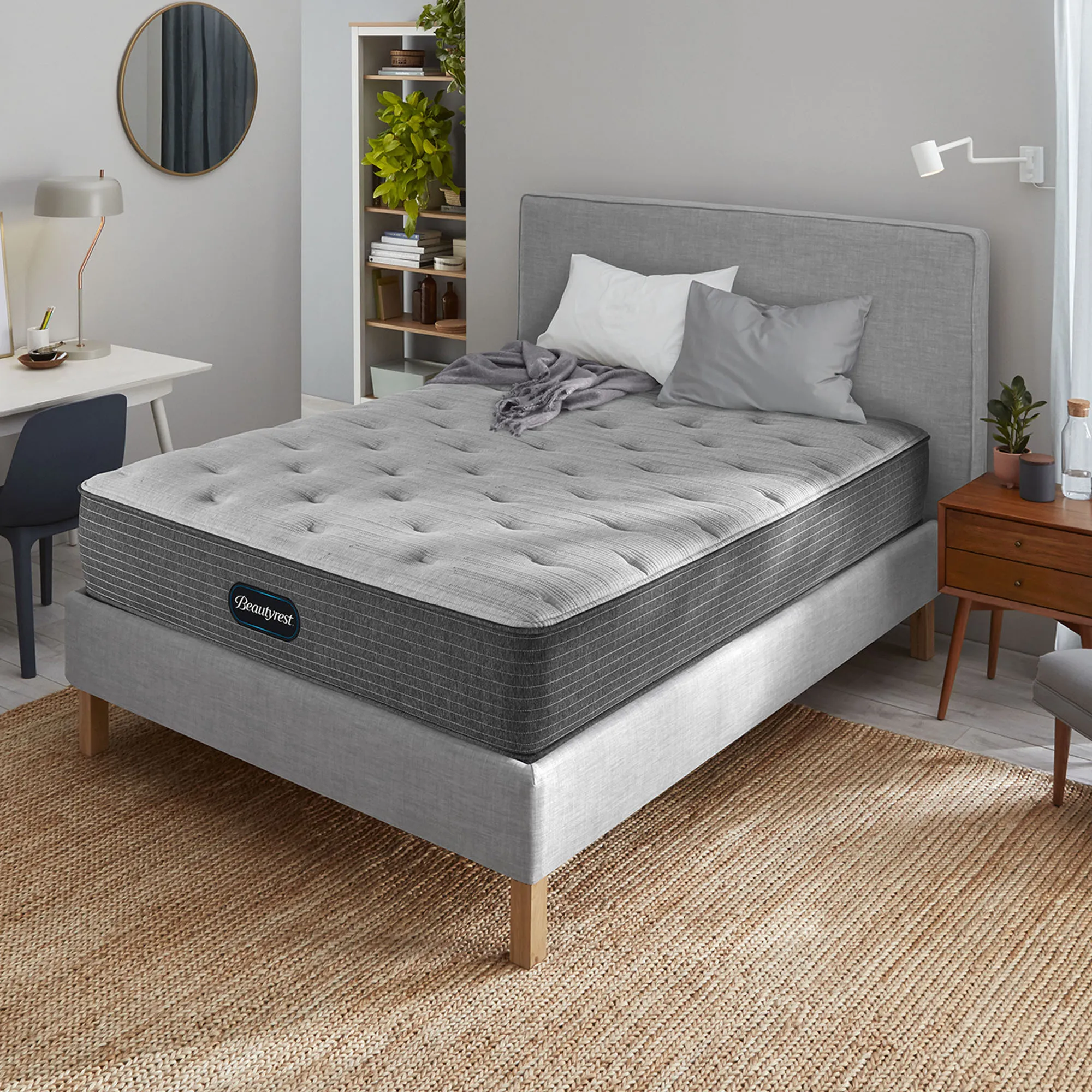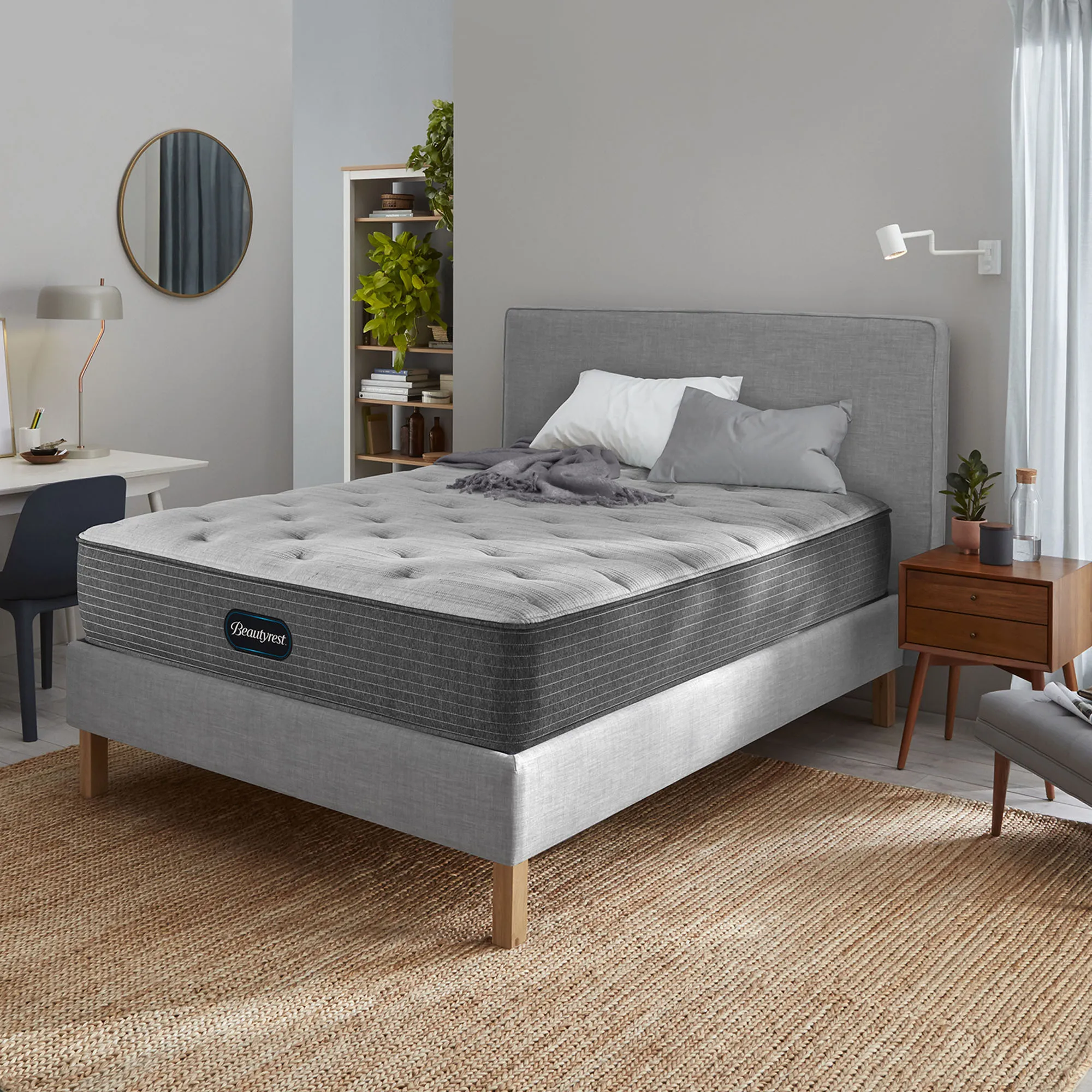 The Beautyrest® Select™ line is constructed of quality materials to provide consistent comfort over the life of your mattress, helping you get restful sleep for years to come. Beautyrest Select is offered in Firm, Medium, Plush, and Plush Pillow Top feels to tailor to your comfort preference. Our Pocketed Coil® Technology provides individualized support while DualCool™ Plus Technology delivers antimicrobial and moisture wicking benefits to help keep you cool and comfortable through the night.