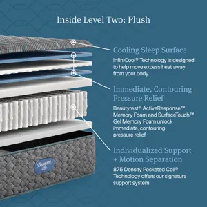 Beautyrest® ActiveResponse™ Memory Foam is designed to help alleviate aches and pains, while SurfaceTouch™ Gel Memory Foam is quilted directly into the surface to unlock instant pressure relief