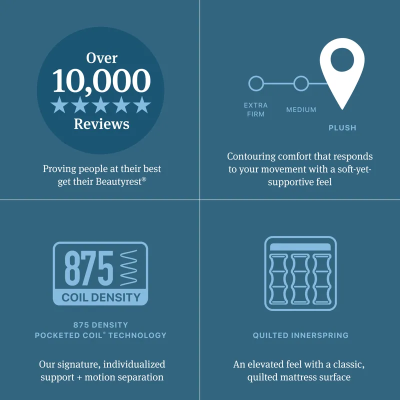 Discover the difference between sleep and Beautyrest® with our signature individualized support + motion separation, contouring pressure relief, and a classic, quilted surface.
